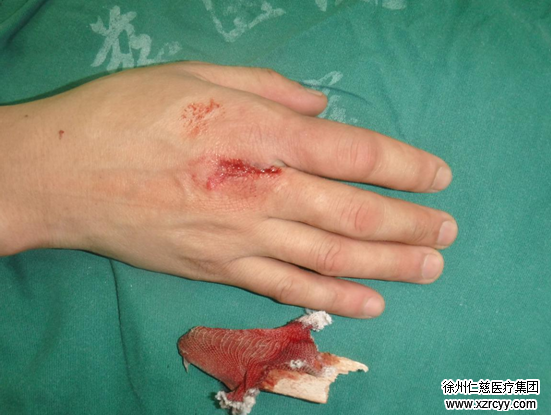 经过一个多小时的手术,李师傅手上的木条被成功取出,伤口也已处理完毕。