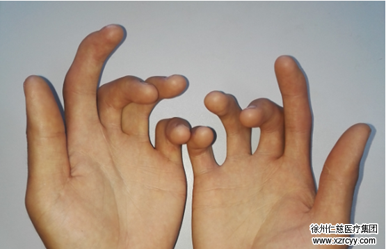 该病常累及双手,但不一定产生双侧对称性畸形。典型的手部表现为,多个指关节屈曲挛缩畸形,即拇指向手掌内手,腕关节屈曲或伸直固定,各关节主、被动活动均受限,往往只有几度的被动活动范围,鱼际肌常见萎缩,手被皮肤缺乏正常皱褶而且紧缩发亮,虎口狭窄。