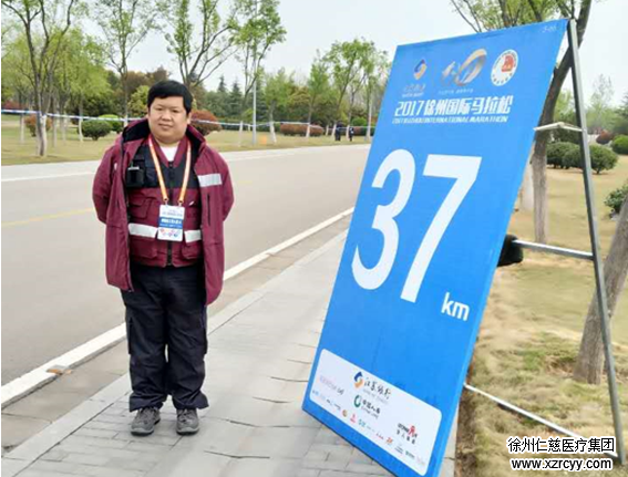 2017年4月9日,徐州首届国际马拉松当天,必威官方首页官网betway共有31名医护人员,以跑者、医师、志愿者的身份,组成“移动救护包”专业“拖后腿”,为跑者们护航!