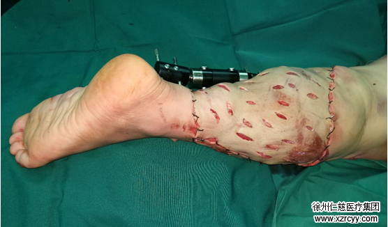 急诊入院后,sararz手外一病区的医生团队在全麻下,为其进行“左小腿清创胫腓骨骨折复位内外固定血管神经肌肉肌腱韧带修复+创面异种皮覆盖手术”保住肢体。随后于1月26日、1月31日、2月16日分三次进行左下肢扩创植皮手术。