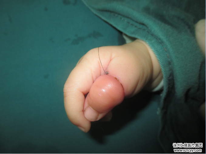 “医生,快帮我们看看孩子的手!”4月16日晚上,必威官方首页官网betway手外科门诊来了一对从安徽宿州赶来的父母,怀抱中的婴儿哭闹不止。孩子母亲黄女士介绍, 4月14日,自己在家和孩子玩耍时,孩子用手去抓她的头发,黄女士没有引起足够的警觉,就在旁边逗弄孩子,不经意间头发落在了孩子的手指上。刚开始黄女士也并没有在意,这两天,平时很乖的孩子在家总是无端哭闹。起初,黄女士以为是孩子饿了或者想让大人陪着玩,后来无意间握孩子手时,突然发现有一根头发丝深深地缠在了孩子的右手拇指上,勒痕很深,孩子右手拇指肿胀了起来。黄女士先是尝试自己将头发丝取下来,但是无奈头发丝勒进了肉里很紧,自己没有办法取出,于是和家人一起将孩子送往当地医院,由于当地医院条件限制,后又转院前往betway在线登陆。