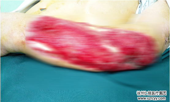 接诊的betway在线登陆手外三病区黎医生介绍,“患者入院检查时发现,患者左肘、左前臂皮肤撕脱,背侧自肘关节至腕关节皮肤软组织缺损,创缘不齐,挫伤严重,创面内肌腱、肌肉呈条索状断裂,尺桡骨骨折断端外露,出血明显。” 人体皮肤由表皮、真皮、皮下组织构成。正常皮肤组织在外界致伤因子的作用下所致伤害,皮肤完整性会遭到破坏,并伴有一定量正常组织的丢失。同时,皮肤的正常功能也会受到损害。