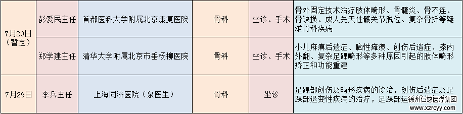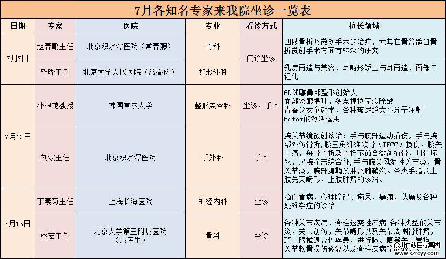 7月份具体的专家坐诊日程详见下表,有就诊需求的患者请尽量快电话预约。