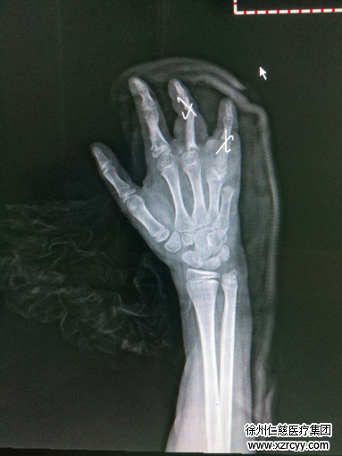 “啊~我的手~妈快来……”听到喊叫的母亲急忙赶来,第一时间关掉机器。中间过程虽仅有1分多钟,可小梓的右手已被玉米机严重“咬伤”,右手中、环、小指多发骨折缺损伴掌指关节脱位,右手第4、5掌骨头端骨折,血肉模糊。
