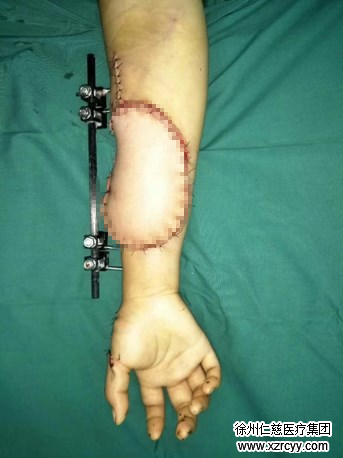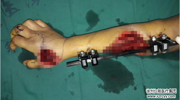 必威官方首页官网betway胡俊生主任接诊了朱女士。经检查,朱女士右臂皮肤软组织缺损,肌腱及骨部分缺损,整个右臂污染十分严重,而且因失血过多,整个人都呈萎靡状态。事不宜迟,胡俊生主任安排好检查后,便立即为其实施了手术。