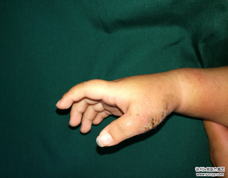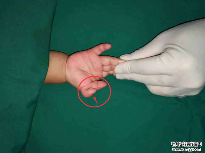 去年8月,小东东出生了。可医生却发现,孩子的右手拇指外侧多长了一个手指头。