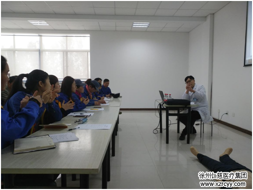 下午1:30,专家团队准时到达江苏国润机械有限公司二楼会议室,工人们以及相关领导已经就坐,简单介绍后,由手足显微外科的厉大夫就外伤预防、职业病预防、院前急救、心肺复苏等相关知识给工人们进行讲解。