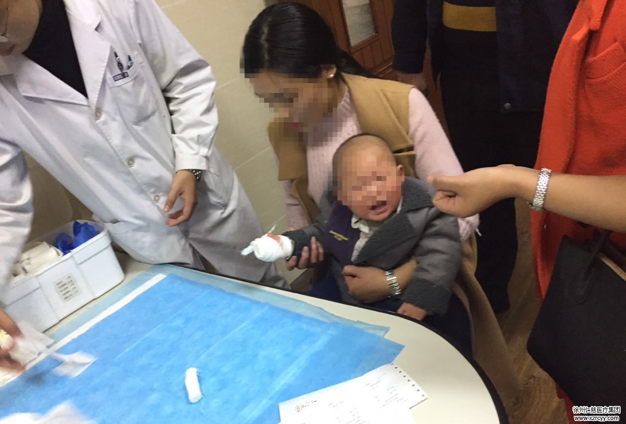 据患儿的妈妈说,11月5日下午, 小宝扶着自己家的木头板凳慢慢地蹒跚前进,爷爷奶奶与她都在距离小宝不到一米的距离处站着说话,谁也没有想到意外就在瞬间发生了。“他自己在那儿扶着板凳走,我们其实也都不放心,就在一旁看着,他身体不稳,走的过程中一下子摔倒了,带着板凳砸到了手,我们想扶,还是没来得及,瞬间的事,太快了。”
