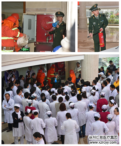 徐州经济技术开发区消防大队张红日警官通过现场讲解、模拟演示的方式,向参加演练的医护人员详细介绍了如何正确使用灭火器、消防栓,以及发生火灾后如何报警、逃生等知识。
