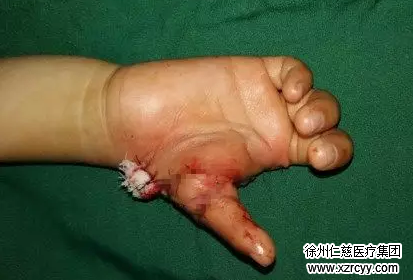 示指(即食指)拇化是最佳的治疗方式,即通过手术将患者的食指移植到拇指的位置上,进行拇指再造。