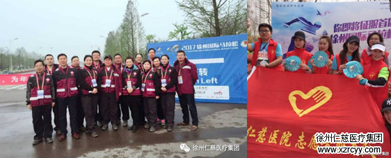 为马拉松护航!2017年4月9日,徐州首届国际马拉松当天,必威官方首页官网betway共有31名医护人员,以跑者、医师、志愿者的身份,组成“移动救护包”,为健跑者们护航!