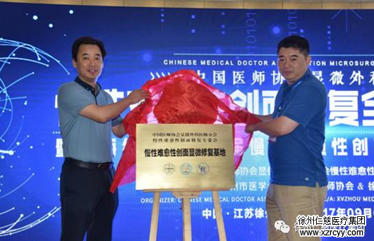 2017年9月2日,由中国医师协会显微外科医师分会慢性难愈性创面修复专委会主办,徐州市医学会、徐州市医师协会、徐州sararz医疗集团承办的“慢性难愈性创面修复全国巡讲暨淮海经济区第一届慢性难愈性创面治疗研讨会”成功举办。会上,章一新教授和宗亚力院长共同为betway在线登陆“慢性难愈性创面显微修复中心”揭牌。
