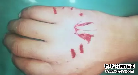betway在线登陆手外科一病区滕道练医生接诊后,听完患者的主诉,立即在急诊清创室查看了徐先生的伤口。徐先生手背上的纱布还带着星星点点的渗血,右手环指伸肌腱部分撕裂,手背上还有深浅不一的鳄鱼牙痕。滕道练介绍说,