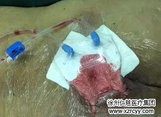 老人入院后,刘衍松主任率领的慢创手术团队为老人制订了详细有效的治疗方案,先后实施了两次手术。第一次手术彻底清理创面部分坏死的组织;之后,采用创面治疗的新技术——负压吸引技术对已感染的病灶进行脓肿引流,及时排除病灶内的脓性积液、坏死组织等有害物质,消除对机体的炎性刺激。