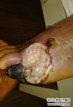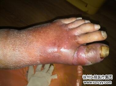 家住徐州市区的徐师傅今年70岁高龄了,1个月前,徐师傅的左脚不小心磨了个泡,有一点破皮的迹象,但面积不是很大,中间徐师傅还用棉签蘸碘伏对脚上磨破皮的地方反复消了毒,可接下来几天,让徐师傅没有想到的是,左脚破皮面积似有若无的扩大,渐渐地流出脓来,徐师傅并未在意。1月24日晚上,徐师傅烧了热水,准备泡一泡脚,这一顿泡脚,第二天徐师傅人就不好了。