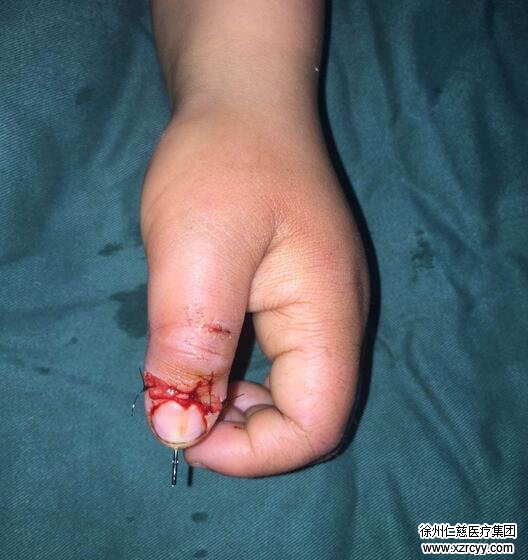 手术进行得很顺利,目前鑫鑫断了的左手拇指已经被成功接上。“先后进行了肌腱修复、骨头固定,再为他接上血管神经。”唐洪伟说,“这种手术比较麻烦,要接上血管神经本身难度大,而患者才6岁,小孩的血管比成人更细,静脉也细,管腔薄,当时我们用最细的显微针线在每条动脉上吻合4针,每条静脉吻合3针,一根手指一般要吻合2条动脉、3到4条静脉。”