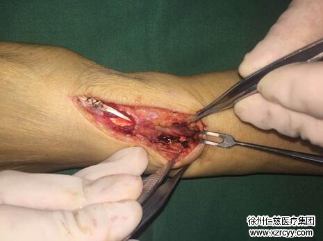 第二天,尚医生就给李大妈安排手术。手术中发现,李大妈的拇长伸肌腱已经完全断裂,断端磨损得非常严重,无法进行直接吻合,去掉无法使用的肌腱以后,缺损大概有4厘米,尚医生在老人手腕掌侧做一切口,截取约6厘米长的掌长肌腱进行移植,修补缺损的拇长伸肌腱。