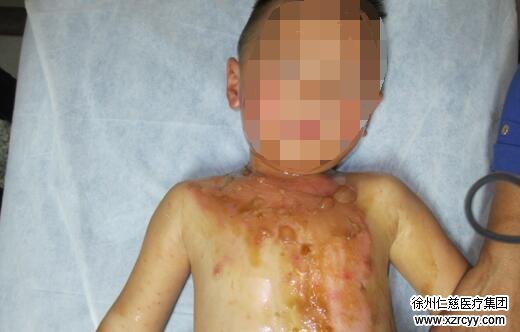 潘珍乙医生介绍,根据他的初步检查,发现孩子身上被烫了十几个水泡,创面位于整个颈部与上腹部,期间孩子一直哭闹,让人看着很揪心。