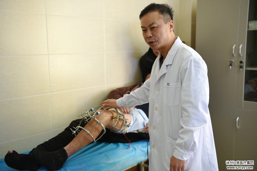 张先生8个月前上班途中发生了一起重大车祸,双腿骨折,膝部遭受重创,当时被120送到sararz抢救,骨科与手足显微外科的医生共同参与了急救手术,如今戴着外固定架康复,这次是来复查的。