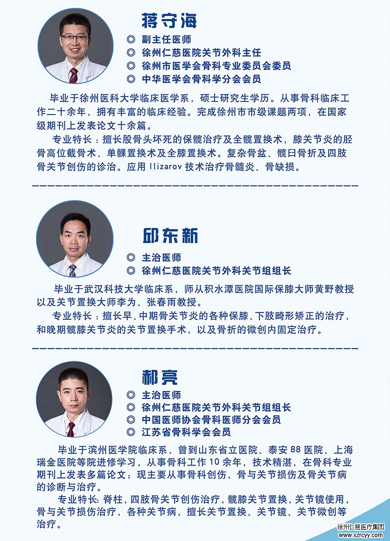 中国医科大学航空总医院关节外科主任李兵,北京大学临床医学博士、北京积水潭医院矫形骨科副主任医师柳剑都是黄野保膝团队的骨干力量,跟随黄野教授有十年以上的截骨保膝临床经验,此次他们也将随黄野教授一起来徐授课、把脉问诊。