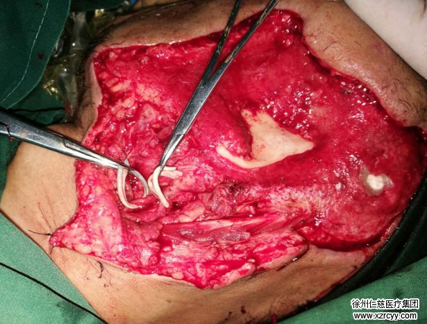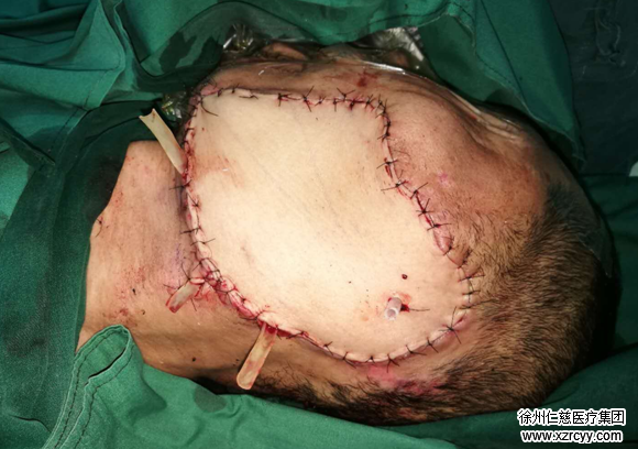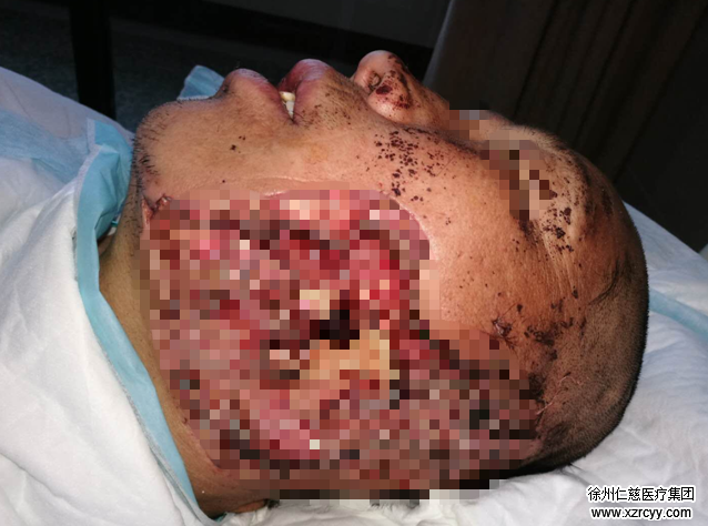 黄振、周晶医生争分夺秒,在手术台上对患者创面展开迅捷而俱到的清创、止血,保护必要器官、血管、神经,术中面颈外动脉撕裂,距颈总大血管、肌肉、神经、腮腺、耳仅差0.5cm,手术医生迅速进行了清创止血修复。