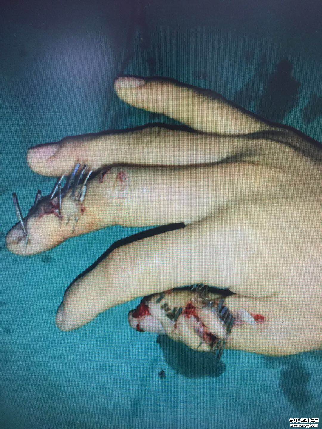 “情况非常糟糕!”我院手外科二病区主治医师唐洪伟接诊后,立即为蒋女士展开了相关的急救和检查。经初步检查显示,钢针密集扎入患者的两根手指,因为外力作用,有的钢针已经严重变形,周围的血管神经和肌腱损伤严重,必须马上手术,否则后果不堪设想。