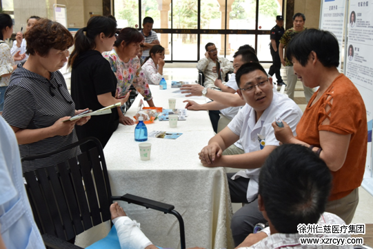 一部分病人是看到我院的义诊预告赶过来的,一部分病人则是来看病恰巧遇上的,于是先找相应的专家免费问问诊;还有不少坐在轮椅上由家属或护工推过来的患者,则是我院足踝和关节、康复病区的住院病人,听说有专家义诊,就想过来再详细听听诊断。