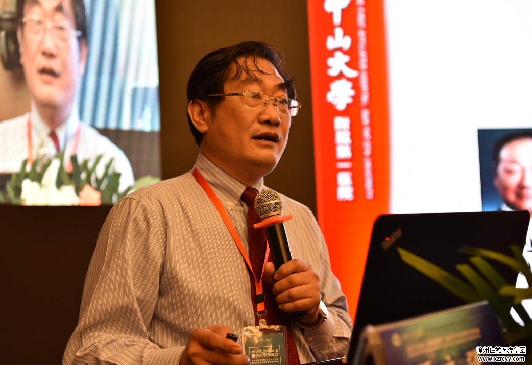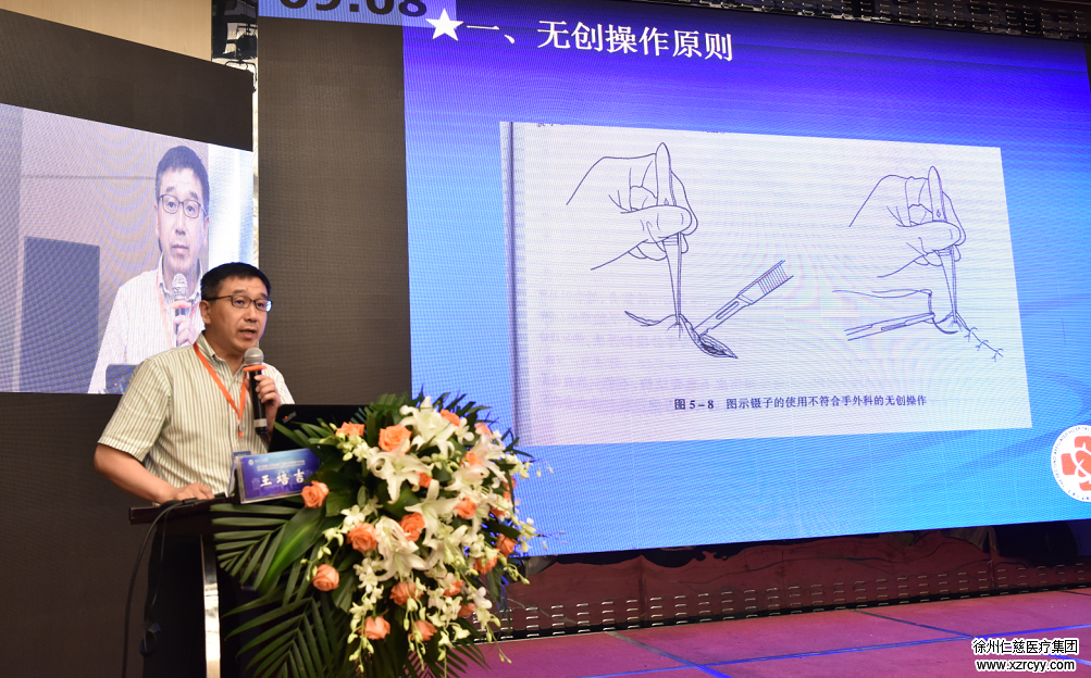 (苏州大学附属第二医院王培吉教授在台上分享了《手显微外科临床诊治失误及对策》)