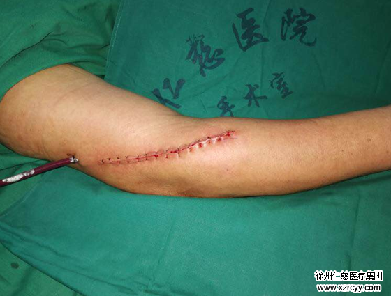 术中,陈步国、尚卫国手术团队在患者右上臂外侧切一15厘米长的切口探查,发现神经与周围组织粘连非常重,卡压非常重,充分松解粘连的肌肉,松解与组织粘连严重的神经,保护肌支,以防粘连材料包裹桡神经,负压引流球置于伤口内引流,高分子夹板外固定。最终,手术很成功。