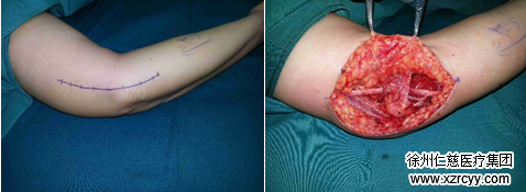 肘管综合征即肘部尺神经卡压综合征。肘关节骨折肘外翻畸形,尺神经受牵拉或骨折复位不良,肘管内骨质不平,尺神经受到磨损;肘管内的血管瘤、腱鞘囊肿等占位病变;骨性关节炎,类风湿性关节炎,全身性疾患如糖尿病、麻风病等都可以产生并发肘管综合征。症状早期患者常感到小指指腹麻木、不适。有时写字、用筷子动作不灵活。症状加重时,尺侧腕屈肌及环指、小指指深屈肌力弱,手内在肌萎缩,出现轻度爪形指畸形。Froment症阳性。李女士经过保守治疗效果不理想,而且逐渐加重,因此需要手术治疗。