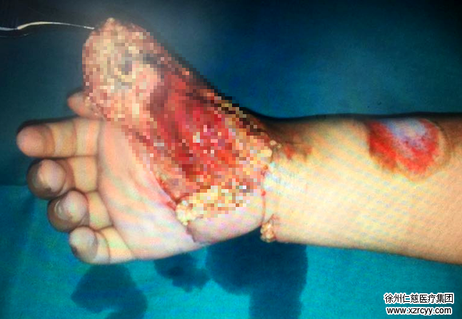 手外二唐洪伟医生接诊,检查发现,孩子腕和手水平多发性血管、肌腱损伤,尺骨骨折,多发性掌骨骨折,于是为受伤女童开辟绿色通道,立即安排手术。唐医生手术团队给小患者实施了“右手、腕清创+右拇指血管神经肌腱撕脱皮肤修复术”,术中去除手腕内失活组织,取出伤口内“油泥”样异物,修剪创缘,修复撕裂的神经血管肌腱,一次性通血成功。