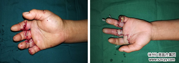 清创、骨折、关节融合内固定、修复肌腱血管神经……每一步手术过程都在严谨而细心地进行着。经过近8个小时的努力,李阿姨的伤口最后一针缝合完毕,双手2-4指成功再植,左小指成功种植,手术一切顺利。