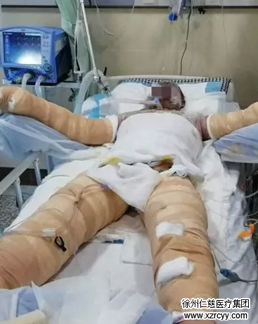 全身被烧得只剩下头皮、足底、会阴10 %TBSA以上正常皮肤的张先生,随时面临生命危险,但他和家人没有认识到危险在一步步逼近,在当地医院医护人员的反复劝阻下,他们仍坚持出院回到家中,错过了第一次救治的最佳时期,未能及时、有效的抗休克。