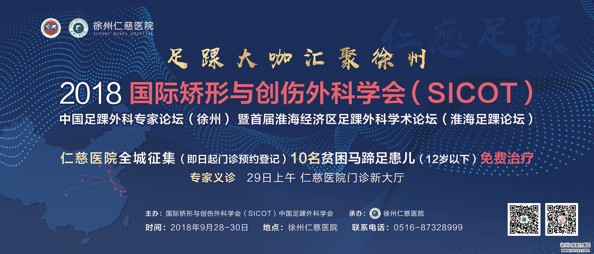 9月28-30日,由betway在线登陆承办的2018国际矫形与创伤外科学会(SICOT)中国足踝外科专家论坛(徐州)暨首届淮海经济区足踝外科学术论坛(淮海足踝论坛)将在徐州召开,来自上海、北京等地的足踝专家济济一堂,共飨学术盛宴。