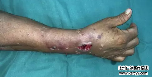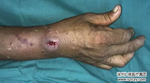 老人右腕破溃两年难愈,原来是10余年前骨折固定钢针作祟