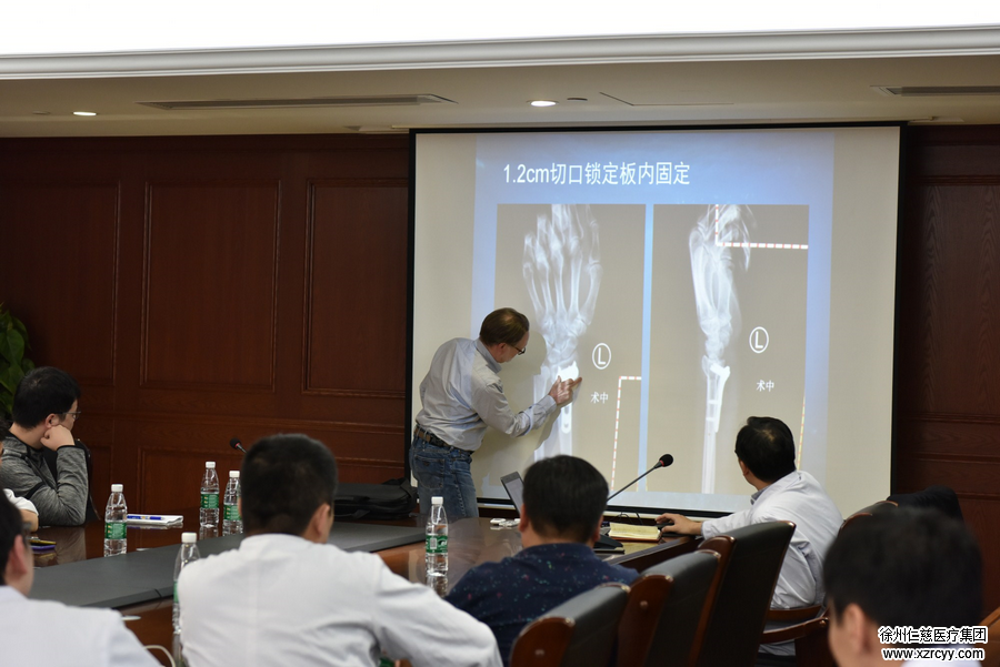 10月10日下午,Philippe教授和我院手外科骨科骨干,进行了充分而热烈的学术交流。在分享了自己的经验后,Philippe教授还对我院手外科医生所做的一些手术病例进行探讨分析,并给大家介绍了自己在做手术时,放置克氏针固定骨折部位后,能够让克氏针更牢固的新技术。