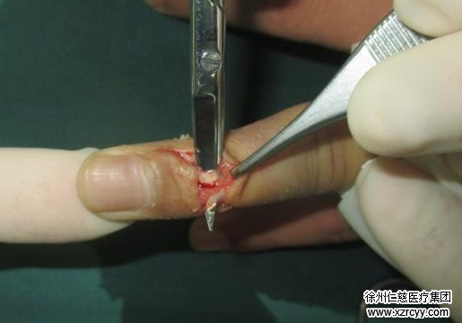 9点40分,手术开始,魏英华医生手术团队为宋军的手指进行局部麻醉后,沿左环指远指间关节背侧做长约2cm的“S”形切口,逐层分离皮下组织至远指间关节,术中探查发现,宋军左环指指伸肌腱断裂,断端少许纤维组织增生。医生为宋军去除增生纤维组织,修剪左环指指伸肌腱断端,予以缝合修复断裂的肌腱……一切步骤都在精准、专业、快速地进行着,短短半小时后,手术完成,一切顺利。宋军将整个手术过程看在眼里,被魏英华医生精湛的技术所折服,他说“加个微信吧,和你挺投缘,说不定咱能成为朋友。”