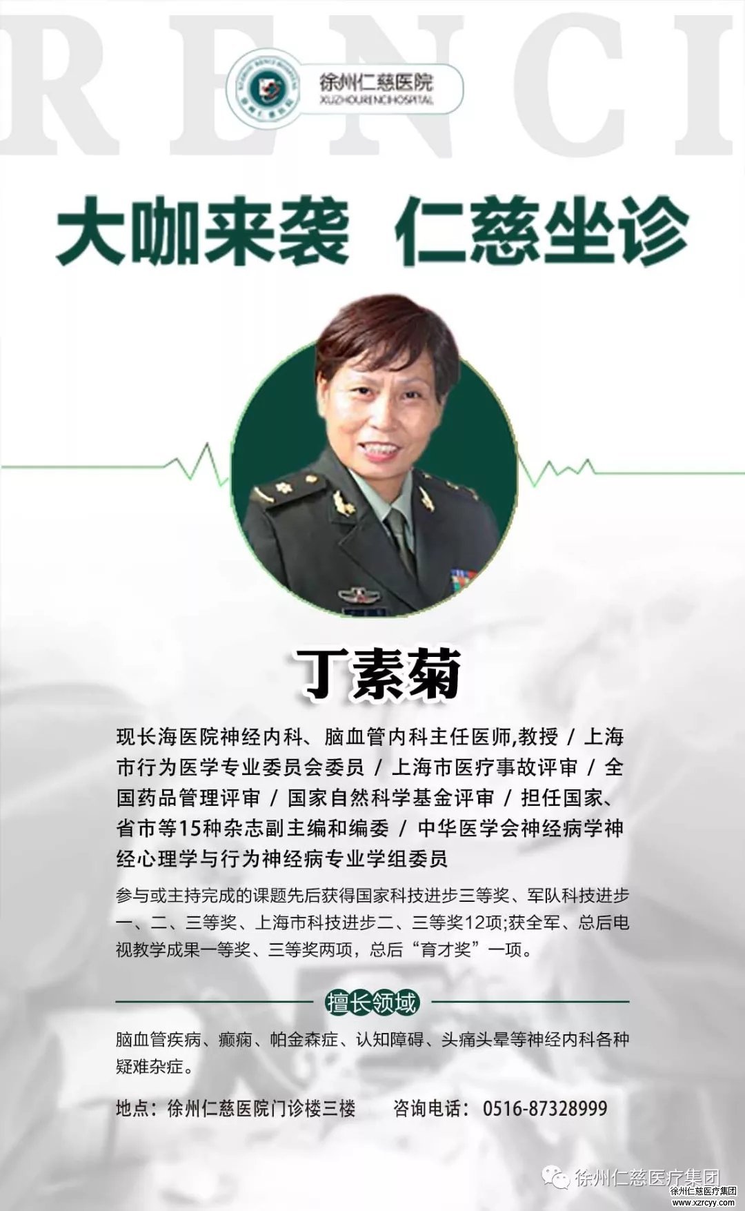 10月27日(本周六),作为我院特聘专家,国内著名神经内科大咖、上海长海医院神经内科、脑血管内科主任医师、博士生导师丁素菊教授将再度亲临betway在线登陆,为广大饱受神经疾病折磨的患者亲诊。