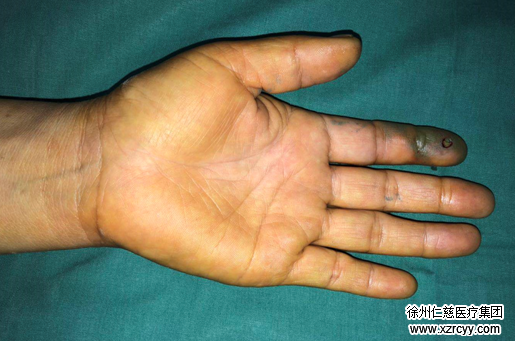 损伤后由于皮肤伤口小,常常不能引起患者足够重视而不及时就医,最终导致乳胶漆继续广泛扩散,由于乳胶漆的细胞毒性及软组织坏死、感染,指体多数情况会坏死、最后被迫截指。