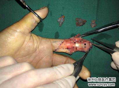 于是,接诊的手外科二病区熊祖国医生手术小组立即为刘女士实施急诊切开减压手术,术中见患者左示指远节皮下大量乳胶漆异物存留,血管神经已被乳胶漆包裹,而且乳胶漆顺着筋膜间隙扩散至示指近节近端,术中予以清除乳胶漆,在显微镜下清除血管神经周围乳胶漆,防止血管神经进一步损伤。