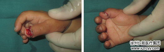 11月3日上午9点左右,家住邳州的1岁小晨晨(化名)在家里玩耍时,不慎被家中铁门挤断了右手大拇指,顿时血流不止。