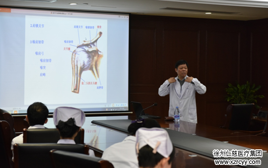 下午2点,沈志祥教授准时走进二楼电教室,打开PPT,和康复医护人员分享《肩关节功能障碍的康复》,沈教授从肩关节功能障碍及相关疾病、肩部解剖学基础、运动学基础、肩关节活动度测量,讲到运动康复治疗技术以及其他治疗技术,沈教授的“健康大讲堂”引来了热烈的讨论与交流,参加的康复医护人员得以分享教授数十年来的宝贵临床经验,受益匪浅。
