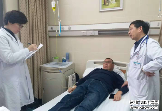 这位脑梗塞、高血压患者一看到朱本亮主任就反映:我这两天有点头疼!头疼可能是输液引起的也可能是感冒引起的,朱主任一边检查他的喉咙一边问主治,得知患者的血压不高,确定他不是感冒,暂时停水观察。