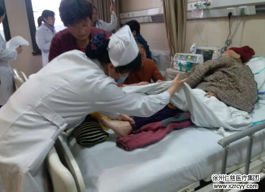 86岁的薛奶奶因肺部感染、胸腔积液住进内科病区,两三位家人轮流照料她。早晨,值班护士过来,帮老人的脚部垫高,防止老人出现压疮。