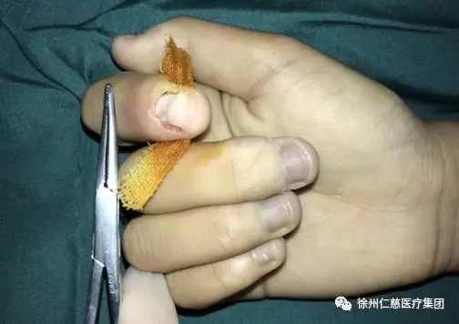 熊医生手术小组为患者进行了右示指清创、远节侧方对口引流手术,术中看到患者远节指骨四周有大量脓液积聚。经过专业手术以及术后伤口换药等治疗,感染逐渐消退。