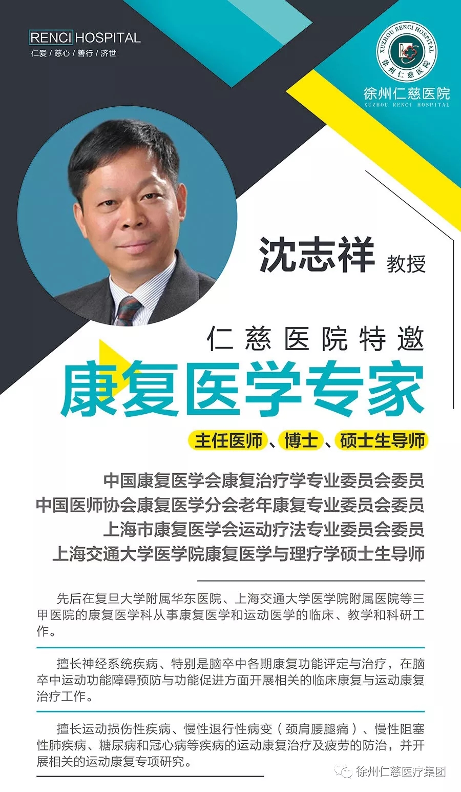 上海交通大学医学院康复医学与理疗学硕士生导师、中国康复医学会康复治疗学专业委员会委员沈志祥教授,坐诊sararz康复科。