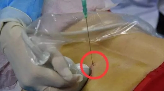 betway在线登陆超声医学科为张先生进行了第二次微创治疗。局部麻醉后,在实时超声图像监视下,赵主任将针尖避开肺、肝、脾、肠等器官,准确刺入肾囊肿。