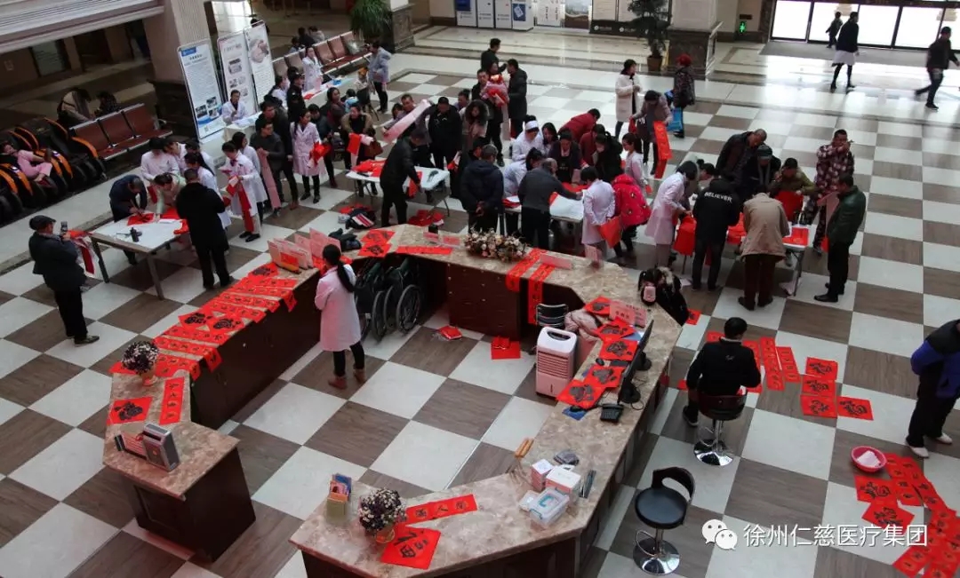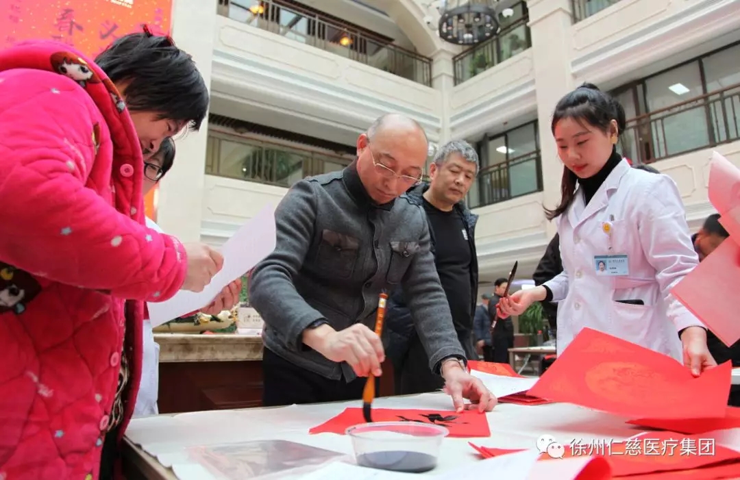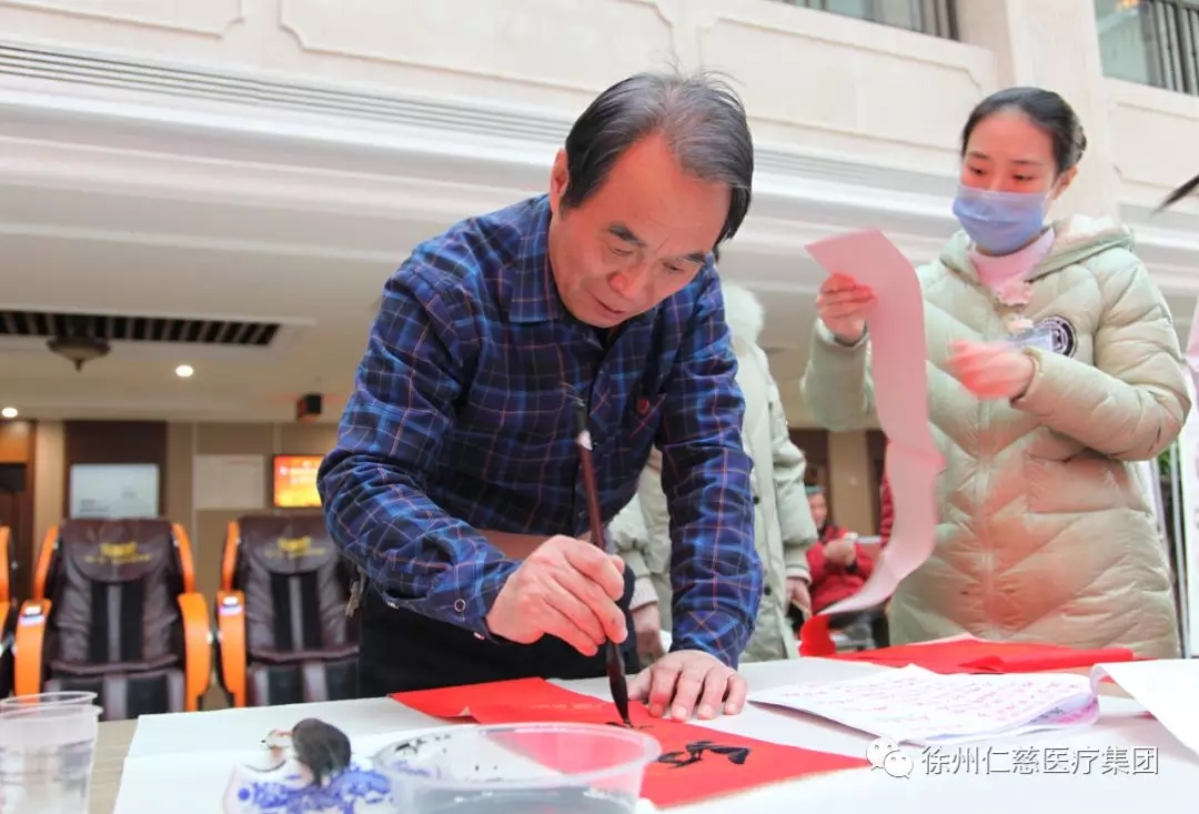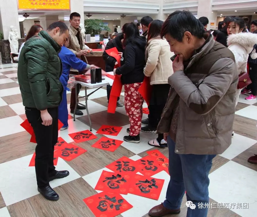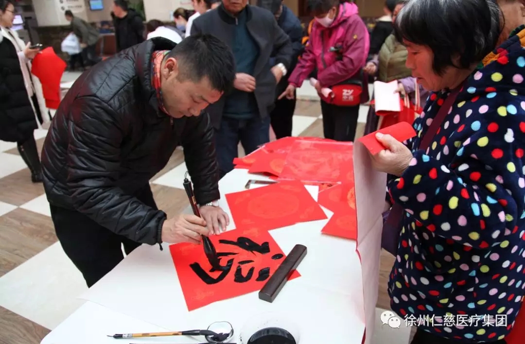 送春联活动一直持续到下午1点多,病人进门先来乐哈哈地讨副“福”字再去门诊,出院的病人也没忘了等一副喜庆的对联再回家。
