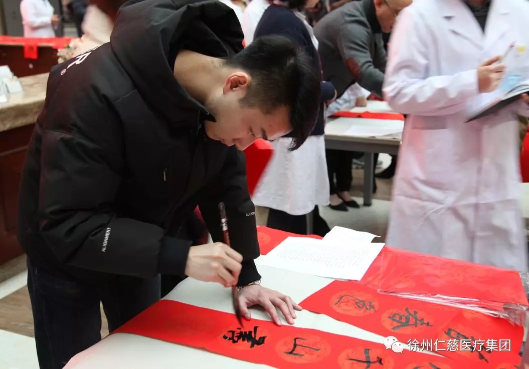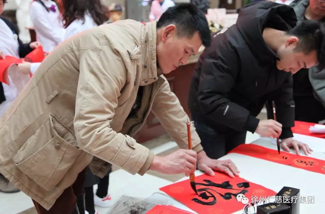 书法爱好者王彬今早特地受邀前来我院,为患者、患者家属、周边居民以及医院员工写春联送福。油亮的墨汁落在正红洒金的对联纸上,喜庆欢悦之气跃然纸上。