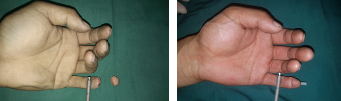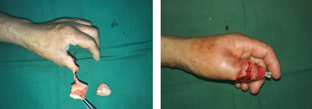 沛县邱大姐,37岁,木材加工厂工人,1.5小时前在工厂被电锯锯伤,致左手掌、左拇指完全离断。